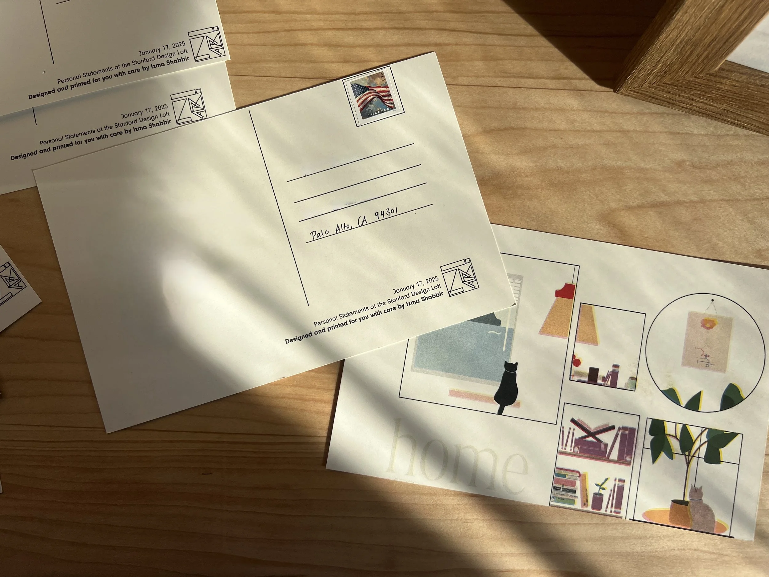 I wanted to explore this concept of home through a postcard series, examining the inside experience of home (dwellings), the public experience of home (transit), and the infrastructure that connects them together (mail).